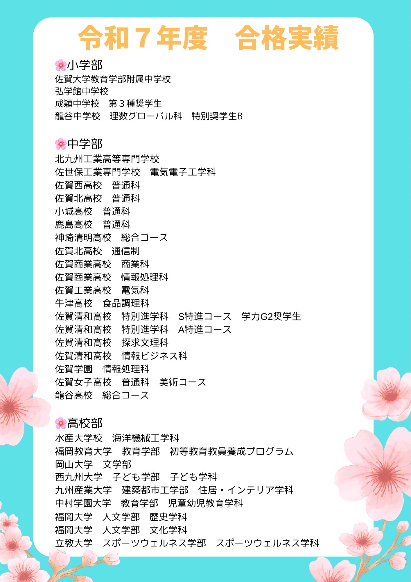 令和7年度 総合学習塾ひたる 合格実績